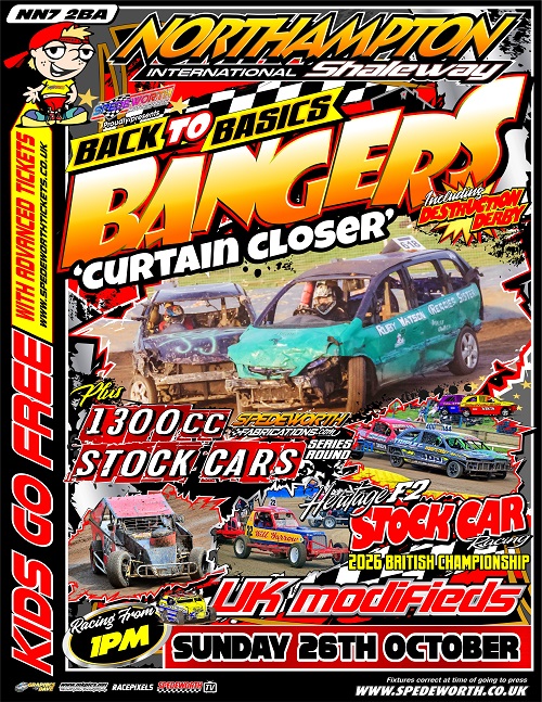 Formula: 1300 Stock Cars | 1ltr Hot Rods | 2.0 Hot Rods | American Cup Cars | Bangers | Bone Builders Junior Micra Stock Cars | BriSCA F1 Stock Cars | BriSCA F2 Stock Cars | Classic Hot Rods | Front-Wheel Drive Hot Rods | Grand Prix Midgets | Heritage F2 Stock Cars | Junior American Cup Cars | Junior Bangers | Junior Stoxkarts | Junior Super Twos | Modstox | National Bangers | National Hot Rods | National Ministox | National Saloon Stock Cars | Old Skool Superstox | Oval Track Legends | Rebels Racing | Reliant Robins | Rookie Rods | Scrapco Ninja Karts | Stock Rods | Stoxkarts | Super Twos | Superstox | UK Barn Finds Historic Stock Cars | UK Modifieds | V8 Hotstox |