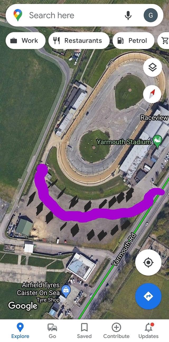 Above is a picture of where we would like the cars / transporters in black and leaving plenty of room in the purple area for Scott to make his final lap.
