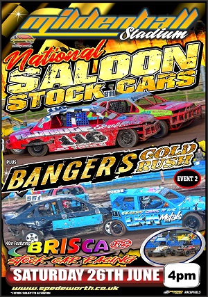 Spedeworth / Incarace would like to make all drivers and race fans aware that the start time for the event scheduled at Mildenhall Stadium on Saturday 26th June has moved forward to 4pm!