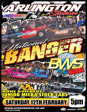 The Unlimited National Banger World Series takes place at Arlington Stadium on Saturday 12th February 2022 at 5pm.