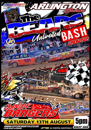 • Saturday 13th August, 5pm @ Arlington Stadium, Eastbourne – The Bears Big Bash (Unlimited National Bangers & Junior Bangers.)