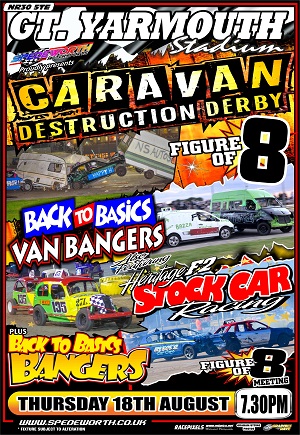 On Thursday 18th August at Great Yarmouth Stadium a Caravan Figure of 8 Destruction Derby will now feature at this event.