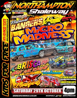 Formula: 1300 Stock Cars | 1ltr Hot Rods | 2.0 Hot Rods | American Cup Cars | Bangers | Bone Builders Junior Micra Stock Cars | BriSCA F1 Stock Cars | BriSCA F2 Stock Cars | Classic Hot Rods | Front-Wheel Drive Hot Rods | Grand Prix Midgets | Heritage F2 Stock Cars | Junior American Cup Cars | Junior Bangers | Junior Stoxkarts | Junior Super Twos | Lightning Rods | Modstox | National Bangers | National Hot Rods | National Ministox | National Saloon Stock Cars | Old Skool Superstox | Oval Track Legends | Rebels Racing | Reliant Robins | Rookie Rods | Scrapco Ninja Karts | Stock Rods | Stoxkarts | Super Twos | Superstox | UK Barn Finds Historic Stock Cars | UK Modifieds | V8 Hotstox |