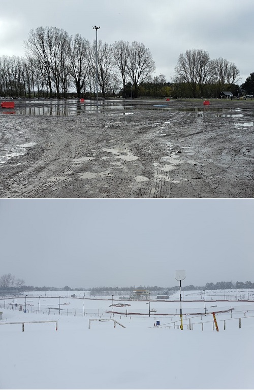 Mildenhall has seen constant rain for over 24 hours and has now turned into snow. The track is raceable however, the pit area and car parks are flooded. We feel that with a little bit of work we could make the track work but there is not fun for anyone racing on a muddy track & for everyone the underfoot conditions would be unsafe.