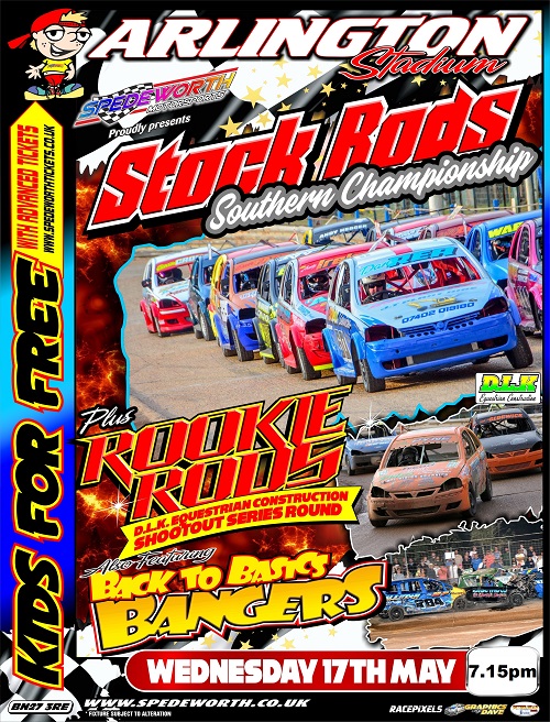 Spedeworth / Incarace would like to make all drivers and race fans aware that the start time for the event scheduled at Arlington Stadium, Eastbourne on TONIGHT (17th May) has moved forward to 7.15pm due to the superb number of cars booked in for a Wednesday night event.