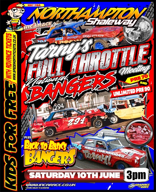 Due to the number of Pre 70`, Pre `90 National Bangers & ‘Back To Basic’ Bangers currently booked-in to race at Tarny’s Full Throttle Meeting we have had to make the unfortunate decision to cancel the Junior Bangers from the event.