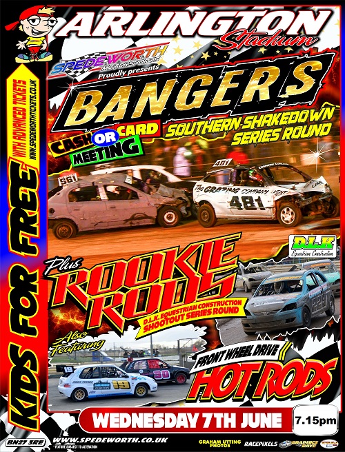 Spedeworth / Incarace would like to make all drivers and race fans aware that the start time for the event scheduled at Arlington Stadium, Eastbourne on Wednesday 7th June 2023 has moved forward to 7.15pm due to the superb number of Bangers booked in for a Wednesday night event.