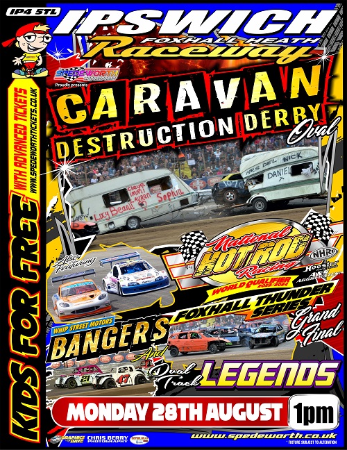 The Foxhall Heath Stadium, Ipswich Caravan Oval Destruction Derby will soon be here and this year the advanced tickets are on sale now!