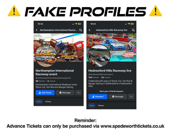 And as a final reminder, Advance Tickets can only be purchased via our official website - www.spedeworthtickets.co.uk - and any form of live stream will only be through www.spedeworth.tv