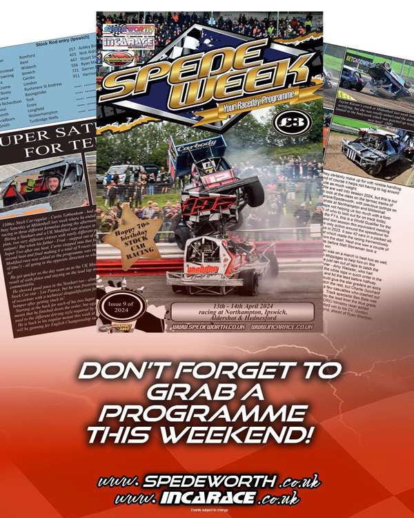 If you are at any of the Ipswich, Northampton, Aldershot or Hednesford meetings this weekend make sure you pick up your Spedeweek programme!