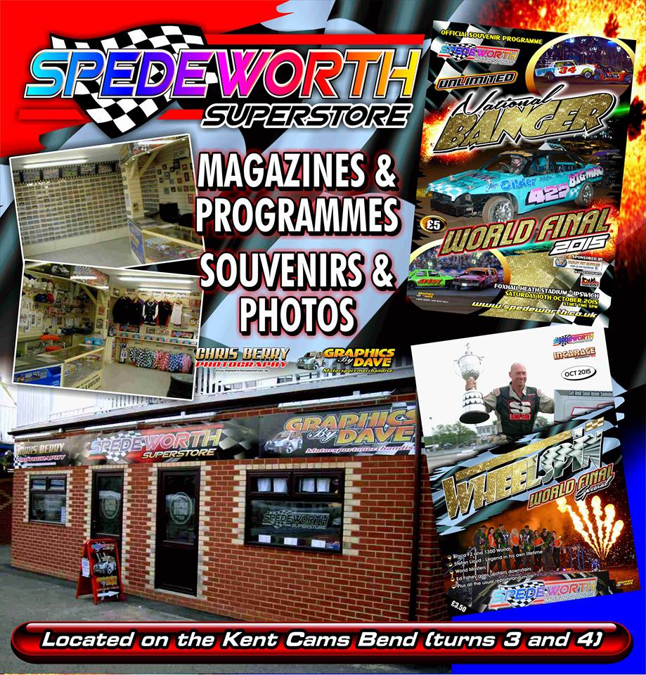 Don't forget to check out the Spedeworth Trackshop Superstore at Foxhall Stadium, Ipswich on Saturday night. There will be merchandise galore from Dave's Graphics including the Official Souvenir Race Meeting Programme, a must for all die hard Fans and collectors plus the brand new October Edition of Wheelspin Magazine will be on sale packed full of features, news, reports and fantastic action pictures.