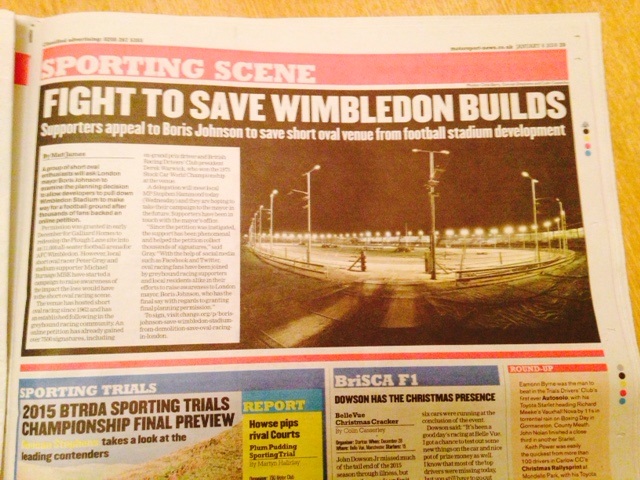 Our good Friends at Motorsport News have shown support to the Save Wimbledon Stadium campaign.