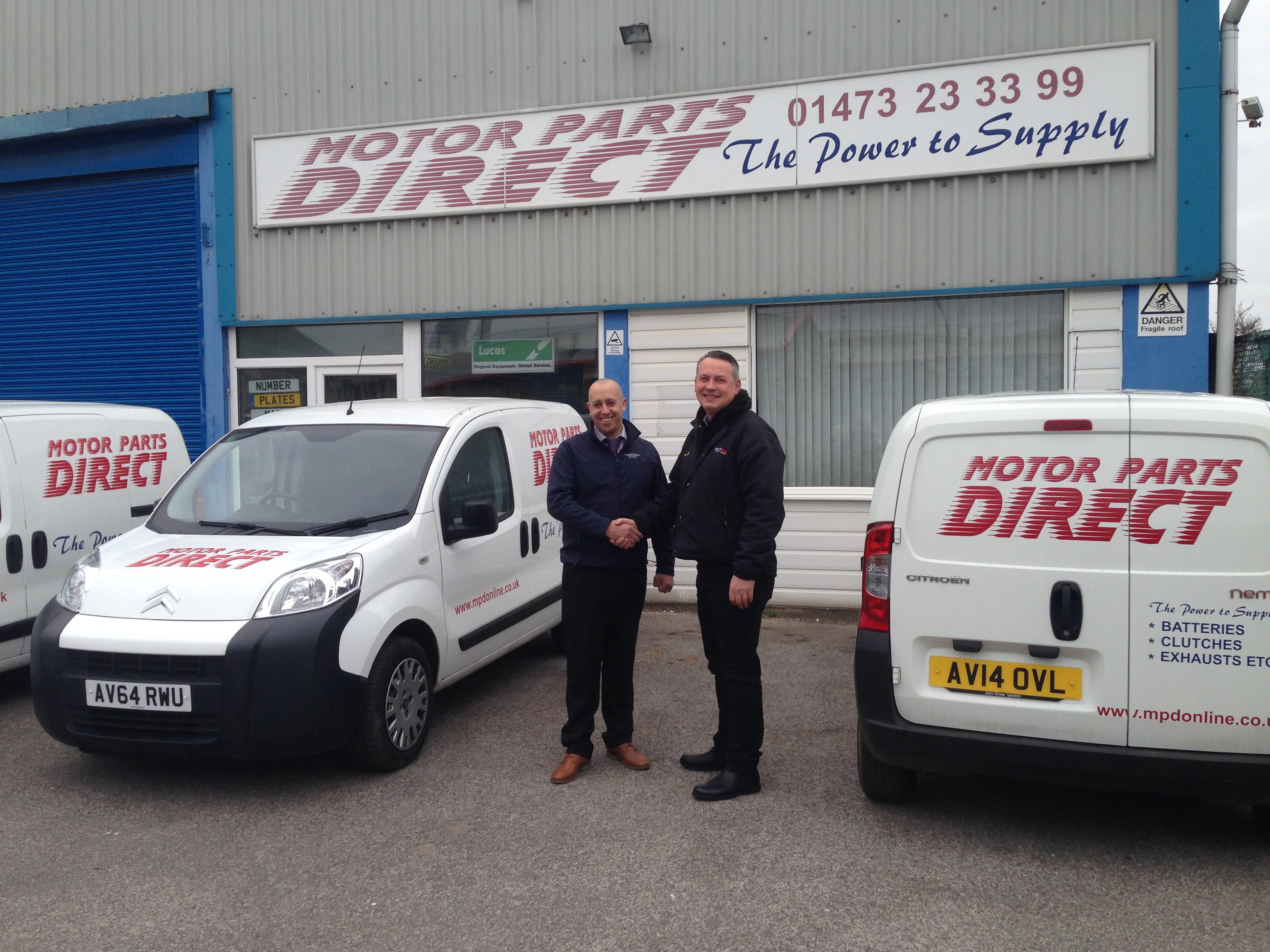 Spedeworth / Incarace' dean cox is pictured with Ipswich MPD Branch Manager, Richard Davey - he is awaiting your custom!