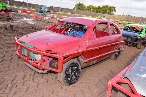 The 1300cc Stock Cars took to the Mildenhall Stadium shale in an out of the hat draw grid and after a very entertaining race it was Dougie George who took the chequered flags to secure the title.