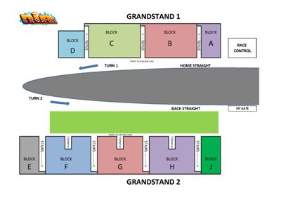 Grandstand 2 (Back Straight) will have blocks E, F, G, H and J running from turn 2 towards the Pit Gate.