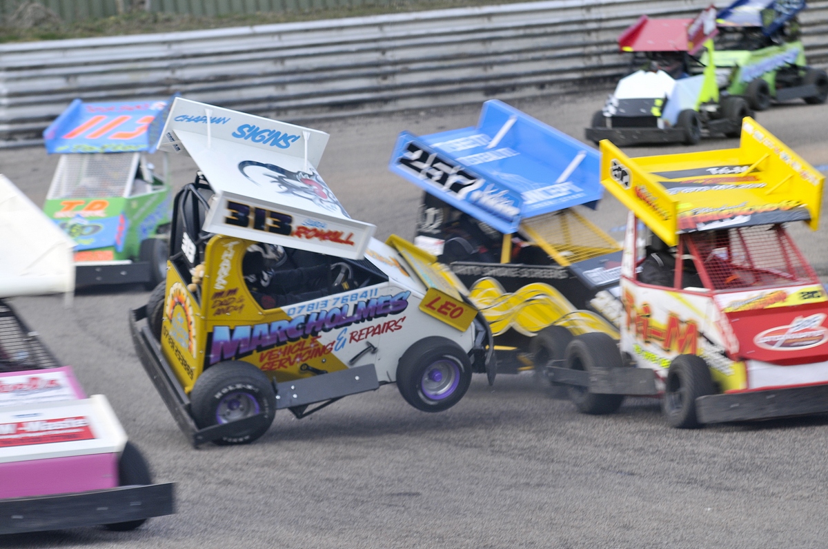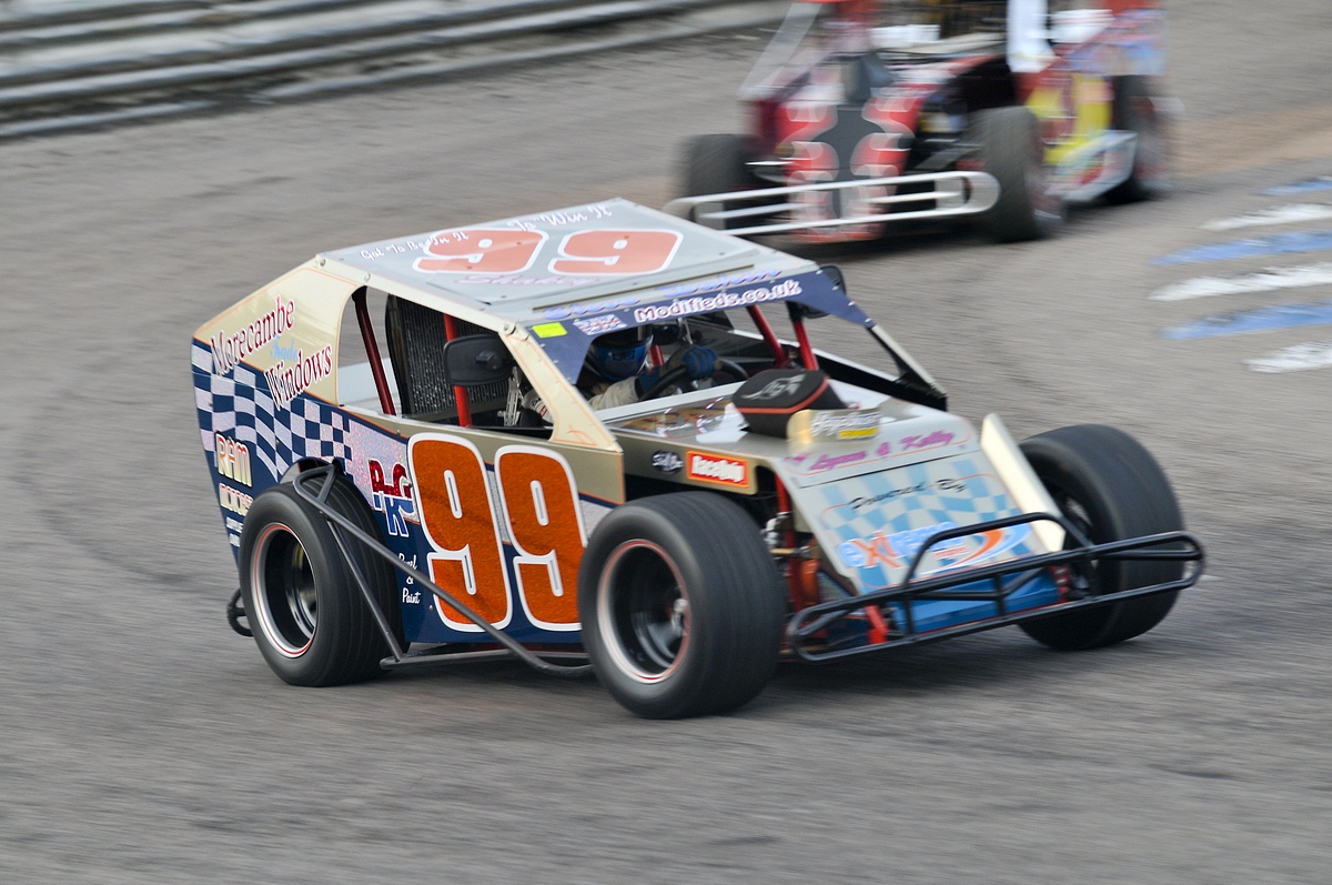 A sizeable grid of Modstox saw BriSCA F2 convert 400 David Sharp lead home his debut race in heat one, an over-exuberant attack at the start of heat two seeing him spin out as 156 Craig McInerney passed 255 Emma Alldridge to take the win after early pacesetter 751 Andy Swinfield lost a wheel. Sharp made amends in the Final as he held off McInerney and 15 James Woolley for his double.