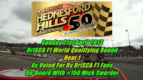 The vote was won by #150 Mick Sworder and this video shows his journey through Heat 1 to the win and also includes footage of the huge rollover collision involving Daz Kitson!