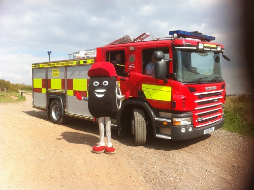 Here are a couple of photos of me at the track and I also met some fire fighters and their big Fire Engine when they popped in to see me as well.