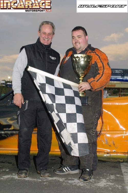 Spedeworth / Incarace would like to congratulate Banger #471 Trevor Perry on becoming the 2014 Wulfsport in association with Dave Gamble Man Of The Midlands Champion at Hednesford Hills Raceway on Sunday 2nd November in front of a big crowd of spectators as dusk fell over the raceway.