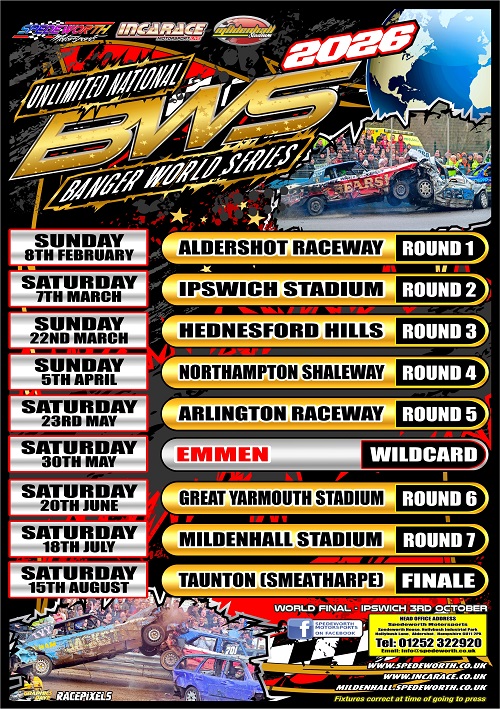 Our Stock Car, Hot Rod and Banger events can be found at at Aldershot Raceway and Arlington Stadium (Eastbourne) in the South, and Mildenhall Stadium, Foxhall Heath Stadium (Ipswich) plus Great Yarmouth Stadium in East Anglia. Racing can also be found at our sister promotion's venues: Incarace Motorsport host events at the legendary Hednesford Hills banked oval in Staffordshire and Northampton International Shaleway - formerly known as Brafield.