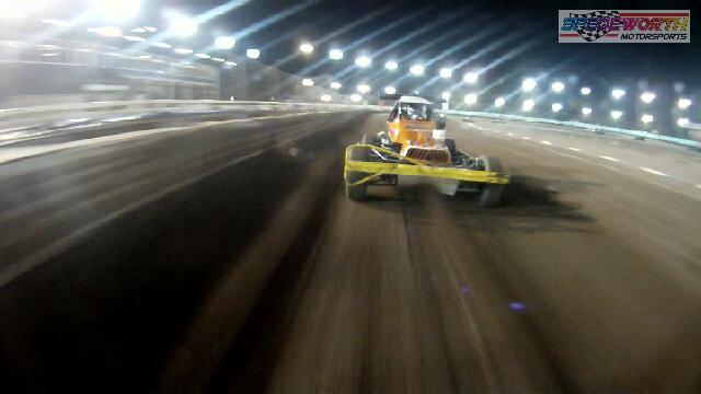 We were on board with 59 Steve Hamilton, who managed to win the 1st race which is shown in full. Unfortunately a blob of shale on the lens early in heat 2 stopped us showing you his 2nd place in that one, but we do have his brief appearance in the Final before a coming together with the fence put paid to his chances!