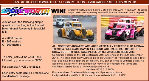 Formula: 1300 Stock Cars | 1ltr Hot Rods | 2.0 Hot Rods | American Cup Cars | Bangers | Bone Builders Junior Micra Stock Cars | BriSCA F1 Stock Cars | BriSCA F2 Stock Cars | Classic Hot Rods | Front-Wheel Drive Hot Rods | Grand Prix Midgets | Heritage F2 Stock Cars | Junior American Cup Cars | Junior Bangers | Junior Stoxkarts | Junior Super Twos | Modstox | National Bangers | National Hot Rods | National Ministox | National Saloon Stock Cars | Old Skool Superstox | Oval Track Legends | Rebels Racing | Reliant Robins | Rookie Rods | Scrapco Ninja Karts | Stock Rods | Stoxkarts | Super Twos | Superstox | UK Barn Finds Historic Stock Cars | UK Modifieds | V8 Hotstox |