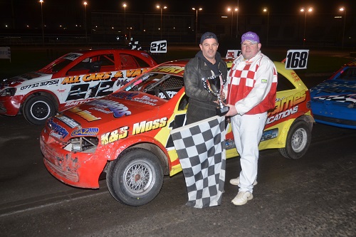 A superb night of Stock Rod racing under the Plough Lane floodlights results in Andy securing pole position for the championship race and despite the challenge from both #171 Dean O’Dell and World Champion #447 Stuart Smyth, Andy was able to keep the lead and be the first driver across the line and secure the win which now means that the #168 machine will also be displaying the Union Flag roof!