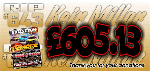 Spedeworth / Incarace would like to thank everyone who donated towards the collection for ORCi Ministox #643 Keir Millar at Arlington Stadium, Eastbourne last night which resulted in a superb £605.13 being raised.