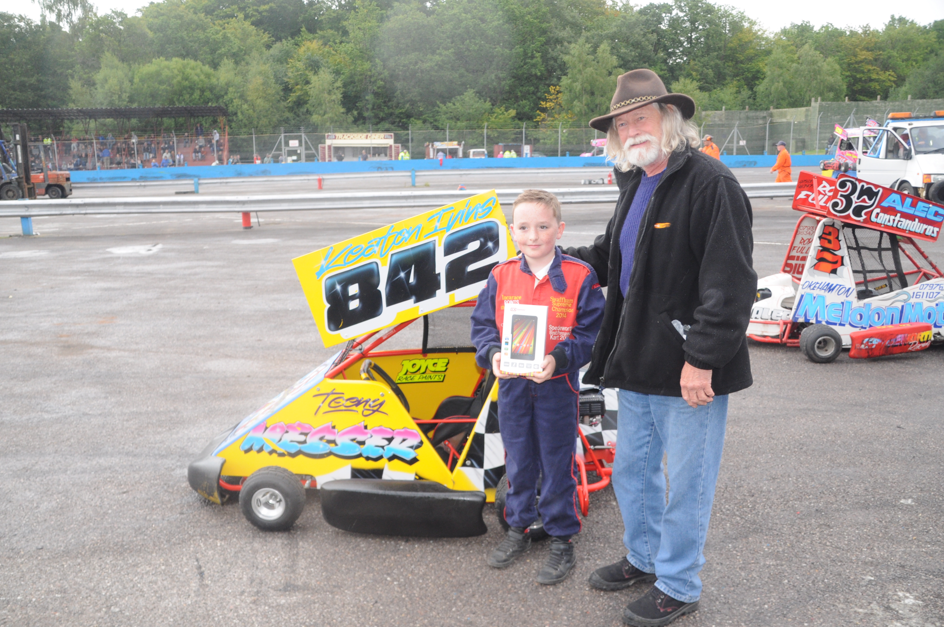 #842 Keaton Ivins took the 2015 Bones Builders Ninja Kart Spedeworth Points Title at Aldershot Raceway on Sunday afternoon.
