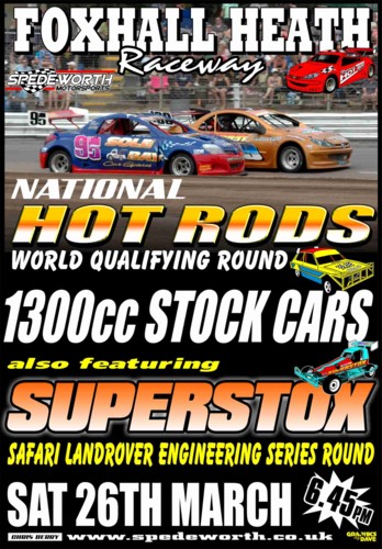 With the 2011 racing season well into its stride this Saturday evening sees a three formula line up at Foxhall Stadium with the usual 6.45 start time, and there is a formula to cater for all tastes as the National Hot Rods are in town to contest Round 10 of the 2011 World qualifying series. If contact is your thing then the Superstox and 1300 Stock Cars will ensure that you go home happy as they always enjoy the wide open Foxhall Raceway.