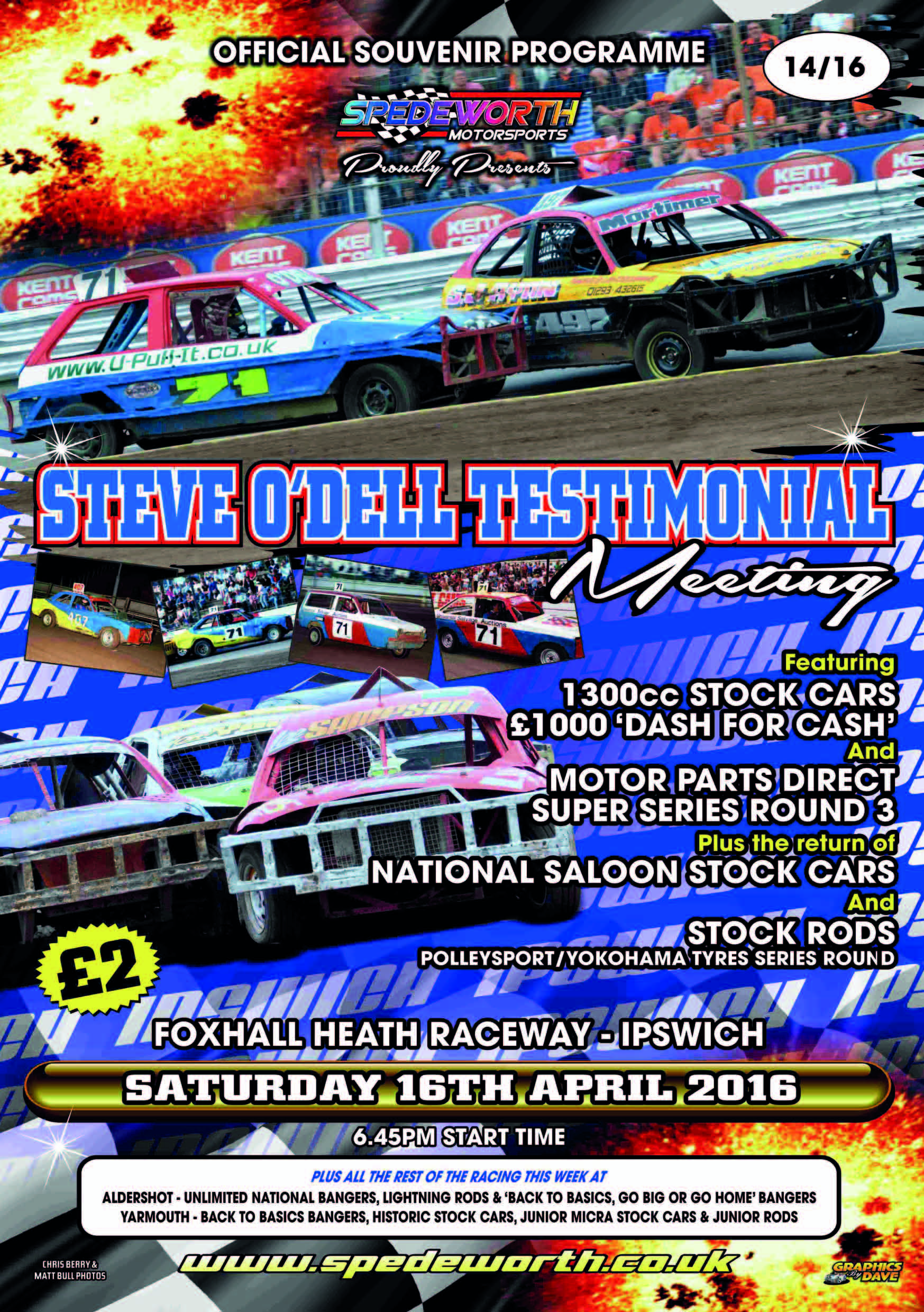 Race Fans, for the Steve O’Dell Testimonial Meeting this coming Saturday 16th April at Ipswich, we have produced a special Souvenir Programme to support the event.