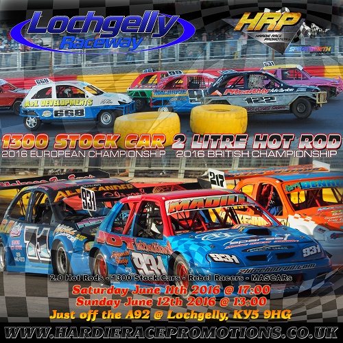 The 2016 1300cc Stock Car European Championship takes place at Lochgelly Raceway on Saturday 11th June @ 5pm.