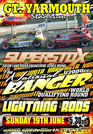 Spedeworth / Incarace would like to announce that the Lightning Rods will replace the Junior Bangers this Sunday (19th June 2016) at Great Yarmouth Stadium following the low number of Junior Bangers booked in to attend the meeting.