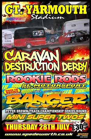 Thursday 28th July see’s the Midweek Summer Season open at Gt Yarmouth Raceway in style with all the seaside fun that goes with it including our famous weekly Banger Caravan Demolition Derbies.