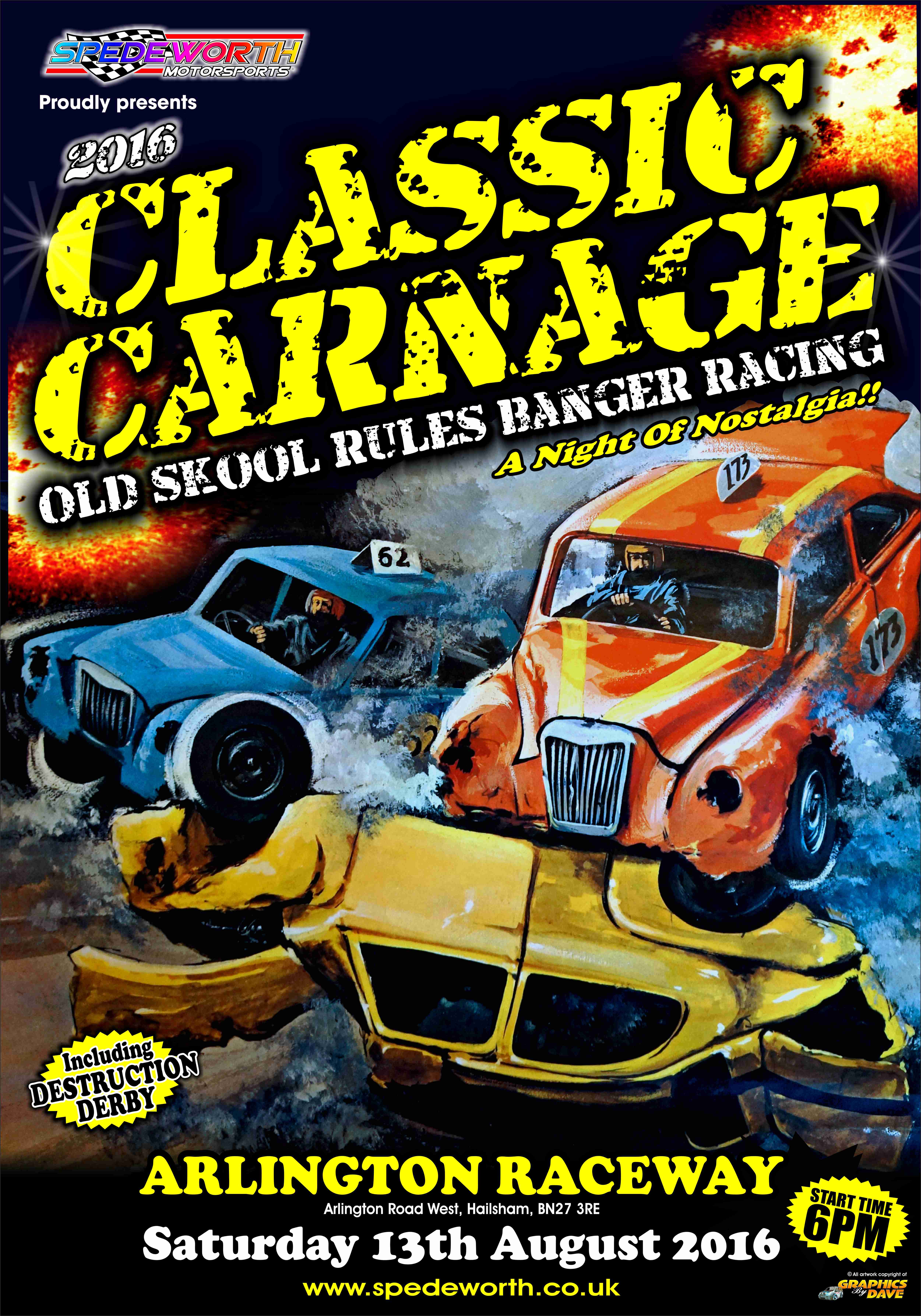 Saturday week at Arlington Raceway, will see the inaugural ‘Classic Carnage’ National Banger Unlimited Meeting which promises to be an absolute ‘Barnstormer’ of a Banger Meeting!