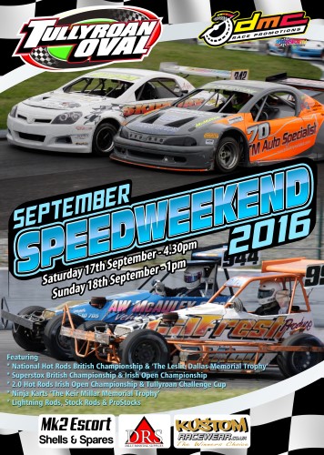 Finally across the sea at DMC's Tullroan Raceway, we have the annual September Spedeweekend featuring British Championships for both National Hot Rods and Superstox with Support Formulas starting at 4:30pm Saturday and 1:00pm Sunday.