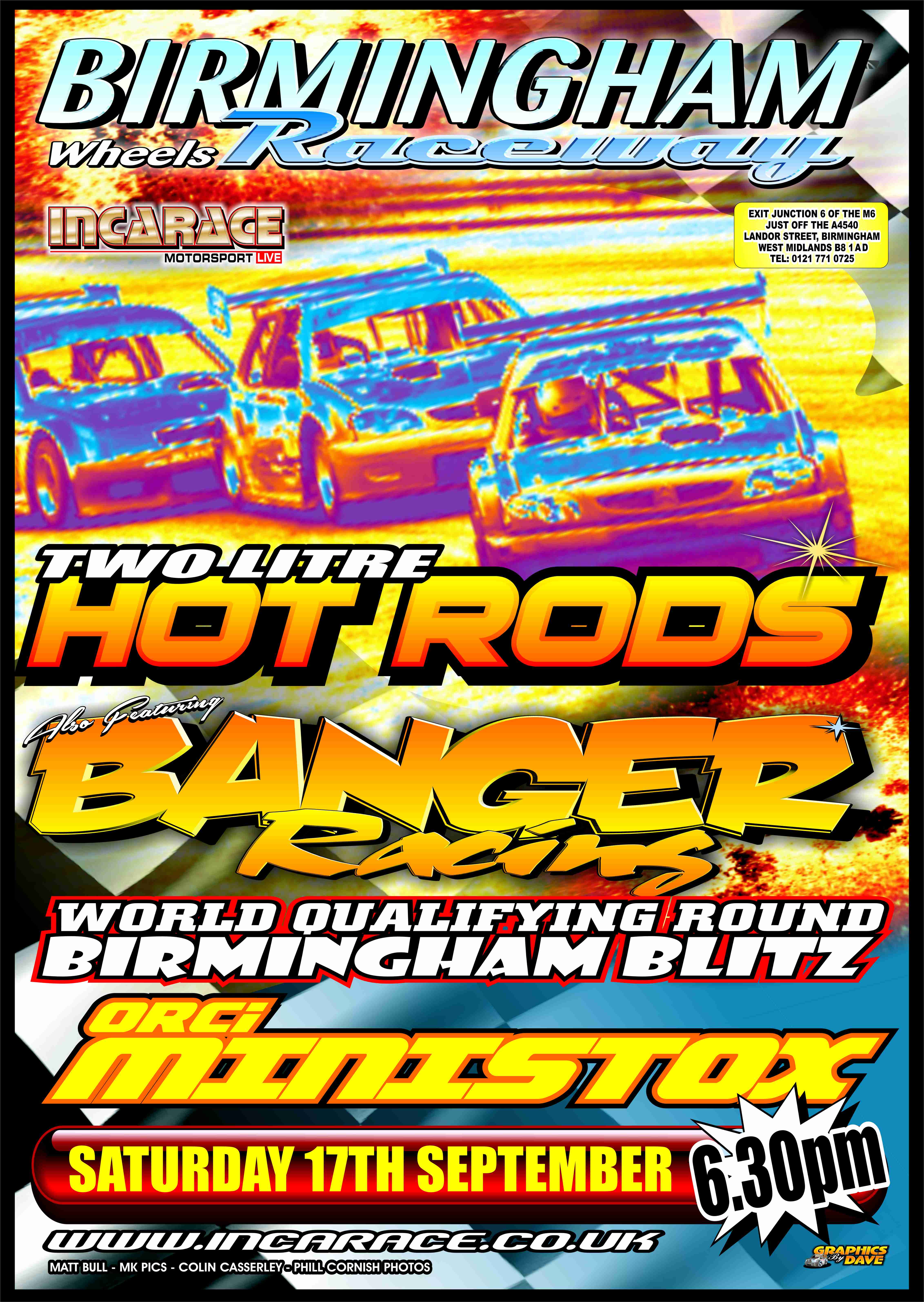 Don’t forget this weekends Race Action is at Birmingham Wheels Raceway on Saturday with 2.0Ltr Hot Rods, Bangers in a World Qualifying Round and ORCi Ministox starting at 6:30pm