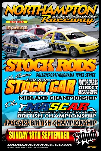 Northampton has 1300 Stock Cars competing for their Midland Championship and the Motor Parts Direct Super Series Round 10, Mascars and Jascars British Championships and Stock Rods competing for the Pollysport / Yokohama Tyres Series Round 9 starting at 1:30pm.