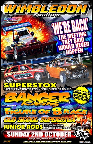 On Sunday 2nd October 2016 Spedeworth / Incarace return to Wimbledon Stadium for the winter season opener.