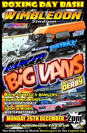 This year we see the Big Vans return which will be anything from small transits upto big camper vans taking to the Plough Lane oval one more time. Which style will be the best and survive to be the last man standing at the end of the destruction derby??