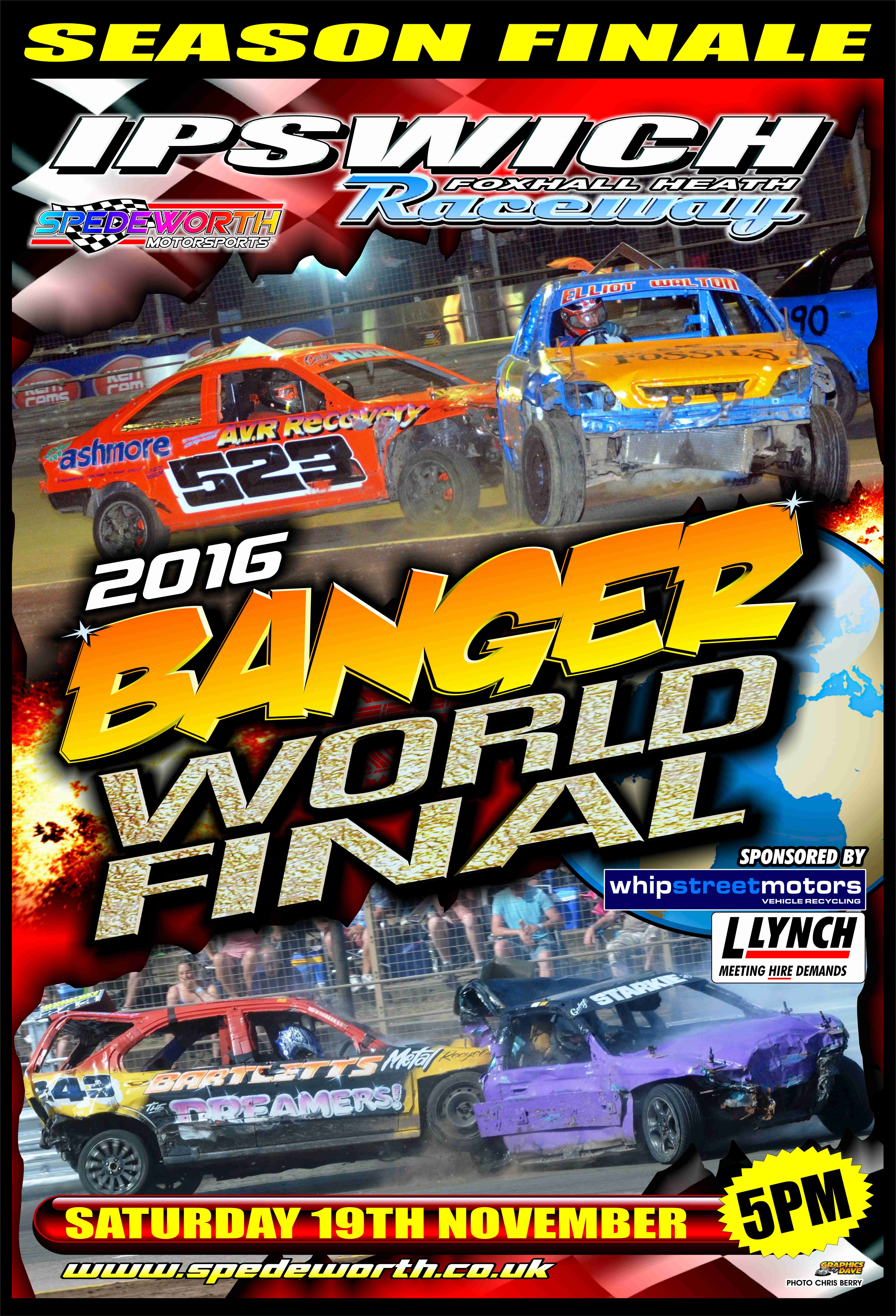 Spedeworth/Incarace are proud to announce that the Headline Sponsor for this forthcoming Saturday Nights Banger Championship of the World Meeting will again be Whip St Motors of Ipswich.
