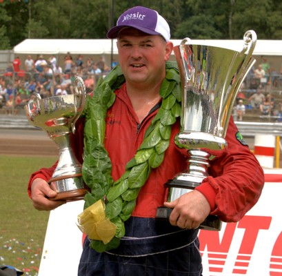 After blowing the field away and setting a scorching qualifying lap time of 14.2 seconds for the big race the next day, Simpson then used his spare car on the Saturday evening to get in some useful competitive practice with victory in the night’s final. Fast forward a day and having shaken off Haird in the race that really mattered he pulled away from the field only for Republic of Ireland star Shane Murphey to close the gap. These two looked well set until Simpson closed on back-marking Tommy Maxwell. He hastily switched to the outside line only to clash with Murphey which sent Simpson spinning in to the armco and sensationally out of the race. Blackman had already been lining up an outside pass on Haird as the melee unfolded with Haird taking avoiding action by switching to the shale whilst Blackman took full advantage with an outside blast on the tarmac which proved decisive in this 40th anniversary running of the big race.