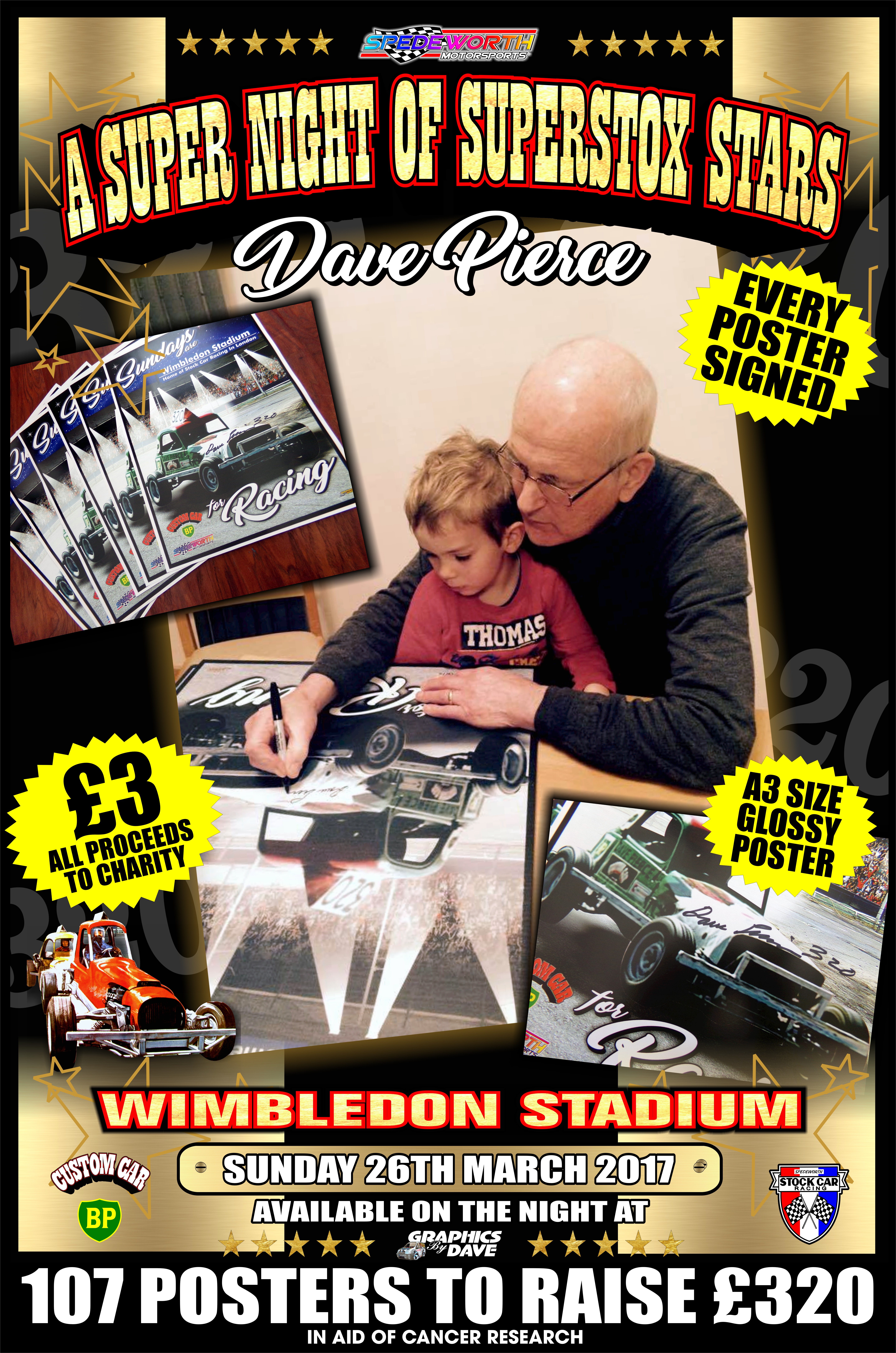 There have been 107 Posters produced WITH EVERY ONE OF THEM PERSOBALLY AUTOGRAPHED BY DAVE PIERCE HIMSELF - and these will be sold at £3 each so that when the 107 are sold, £320 would have been raised and these proceeds will be going to Dave pierce’s nominated Charity, Cancer Research.