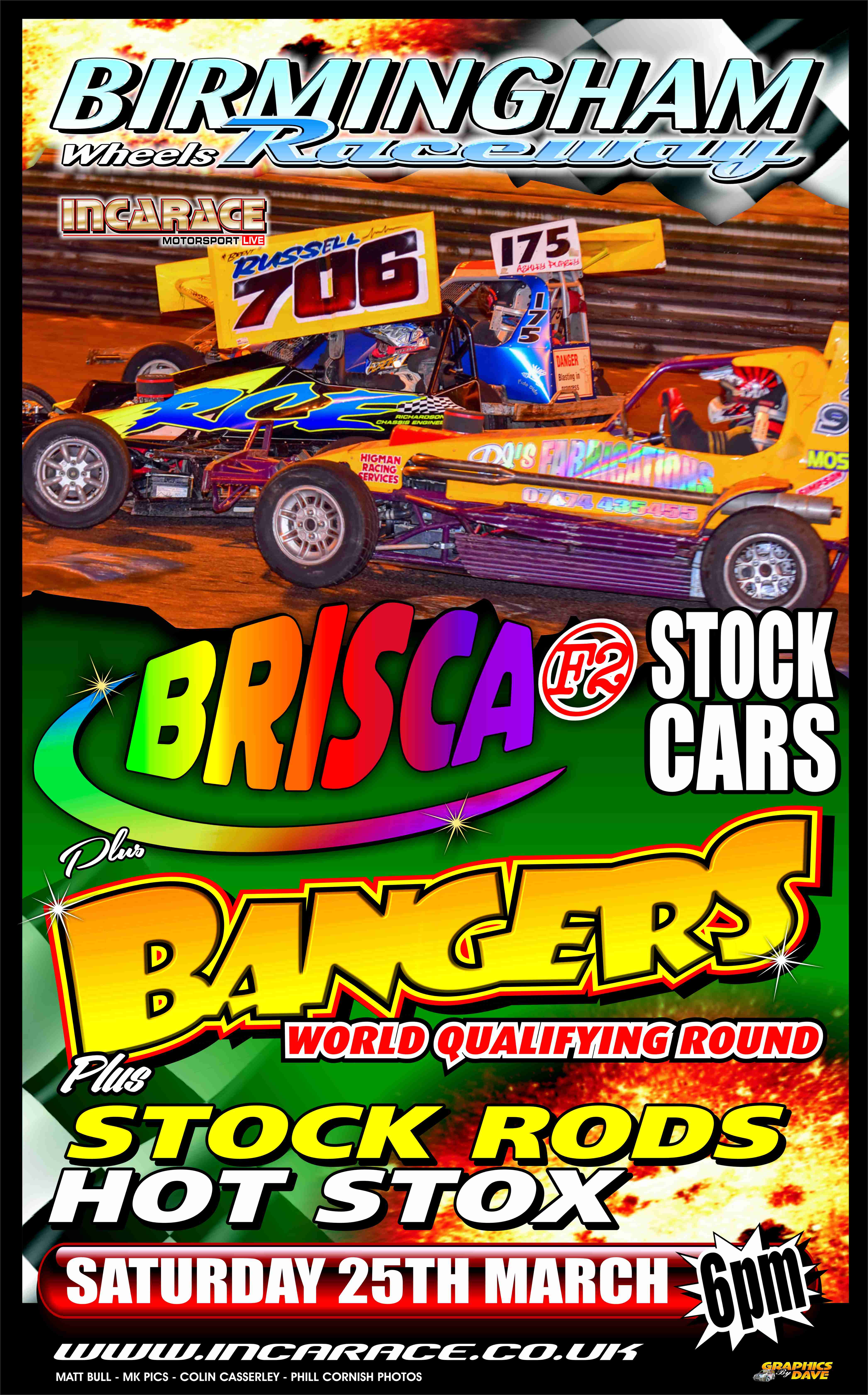 Don’t forget this weekend’s Race Action kicks off on Saturday 25th March at Birmingham Wheels Raceway. Its Brisca F2 Stock Cars, Bangers, Stock Rods and V8 Hotstox making it a cracking meeting not to miss in the City, starting at 6:00PM.