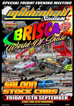 The Friday night will now feature the BriSCA F2 Stock Cars World Of Shale which moves from the original date at Mildenhall Stadium which was scheduled for the 26th August 2017.