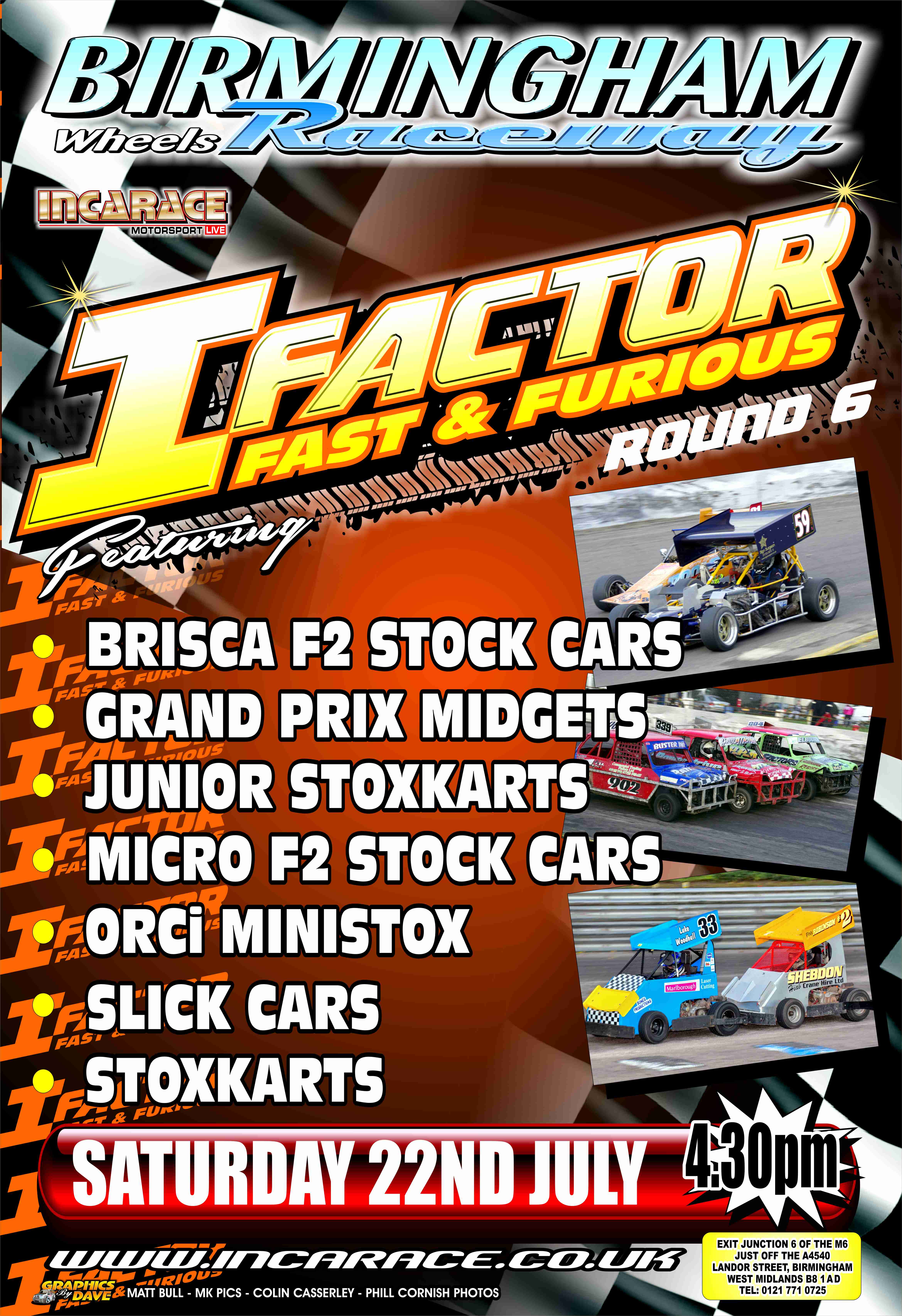 Don’t forget this weekend’s Race Action kicks off on Saturday 22nd July at Birmingham Wheels Raceway with I – Factor Fast and Furious Round 6 with a multitude of Formulas making for a busy Night of racing in the City, starting at 4:30PM.