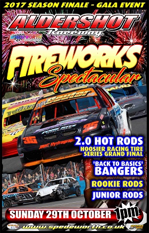First race on Sunday 29th October 2017 starts at 1pm and the event also feature the 2.0 Hot Rods Hoosier Racing Tire Series Grand Final, ‘Back To Basic’ Bangers, Junior Rods and for the first time at Aldershot Raceway a fireworks spectacular!