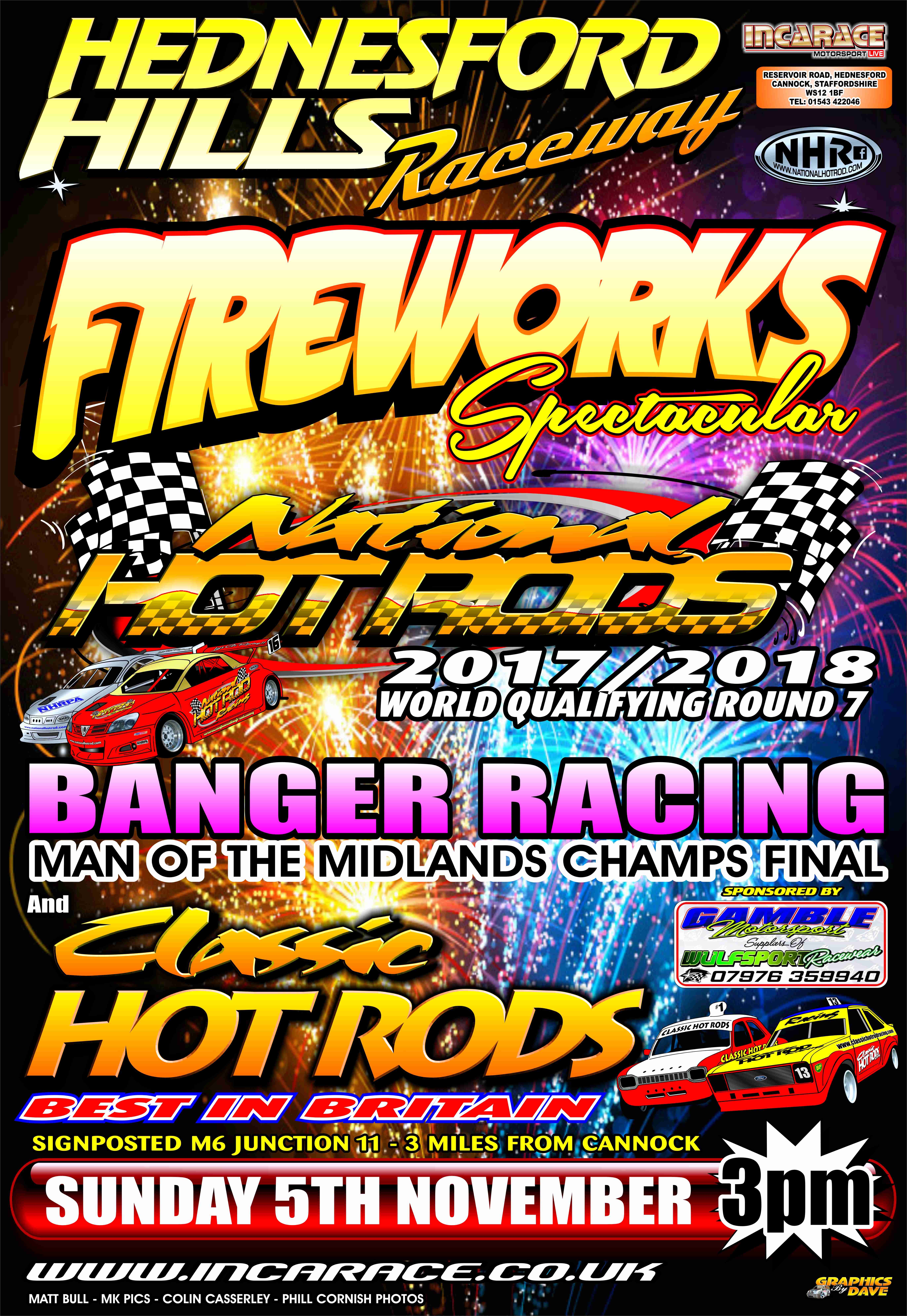 And then on Sunday at At Hednesford we have the Season Finale Gala Night with Bangers, Man of the Midlands, a superb 31 Classic Hot rod entry for their 2017 Best in Britain and National Hot rods in the Hoosier Tyres English World Qualifying Round 7 plus of course one of our Firework Spectaculars with the action getting underway at 3:00PM