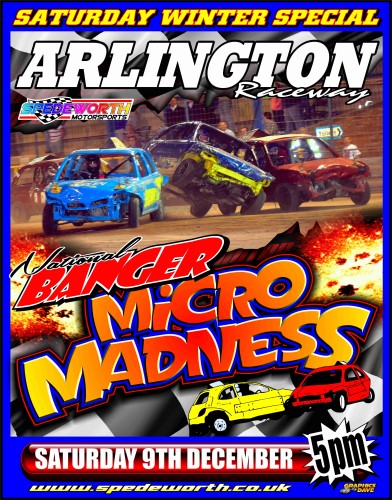 The bookings for the Micro Madness meeting at Arlington on Saturday 9th December are flooding in, so much so, that we have taken the early decision to remove the Historic Stock Cars from the event to allow more Micro Bangers to take part.
