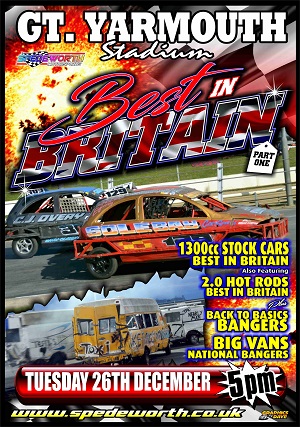 Spedeworth / Incarace would ask that any 1300cc Stock Car or 2.0 Hot Rod drivers who are planning to race at Great Yarmouth Stadium on Tuesday 26th December 2017 to book-in ASAP!